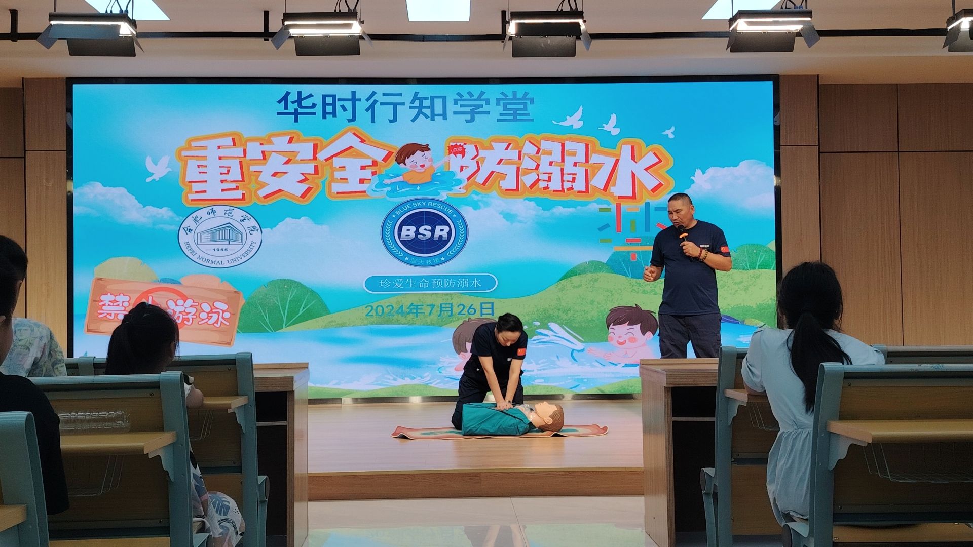7月26日,beat365在线唯一官网“华时行知学堂”联合蓝天救援队在华时学校举办“重安全,防溺水”安全教育讲座,向当地的留守儿童宣讲防溺水安全知识,引导学生进一步提高安全意识和自救技能。