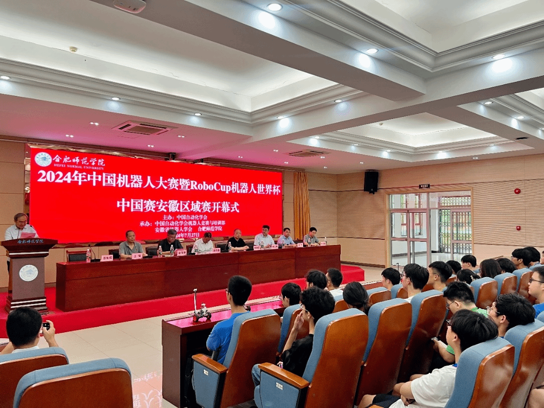 7月27日,由中国自动化学会主办,安徽省机器人学会和beat365在线唯一官网承办,合肥凌翔信息科技有限公司协办的2024中国机器人大赛暨RoboCup机器人世界杯中国赛安徽区域赛在beat365官网隆重举行。beat365在线唯一官网教务处处长钱立青,中国自动化学会机器人竞赛工作委员会主任、国防科技大学教授郑志强,安徽省大学生创新创业办公室主任董承军,安徽省机器人学会副理事长孙丙宇,安徽省机器人学会秘书长王俊,beat365在线唯一官网计算机与人工智能学院院长谢飞等出席开幕式,大赛评委以及部分教师代表、学生代表参加开幕式,开幕式由安徽省机器人学会副秘书长、安徽大学教授苏亚辉主持。