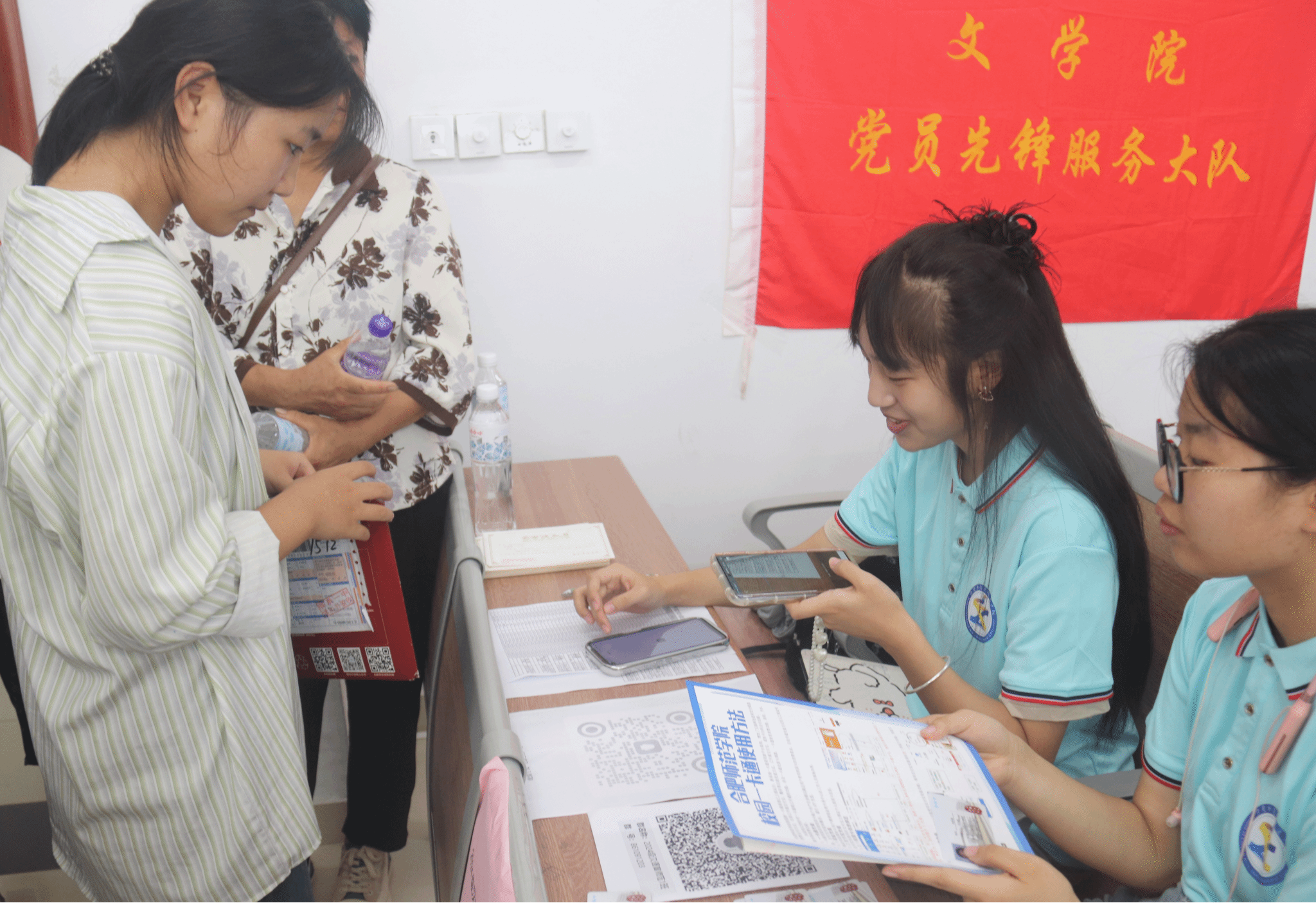 骄阳似火,党旗飘扬。9月8日,文学院2024级新生们来校报到,翻开了人生崭新的一页,奔赴新的旅程。为保障新生顺利入校,以热情周到的服务迎接新同学的到来,文学院师生党员主动靠前服务,通过党员先锋服务大队、党员服务台等方式,用先锋引路,以温情迎接新生的到来。