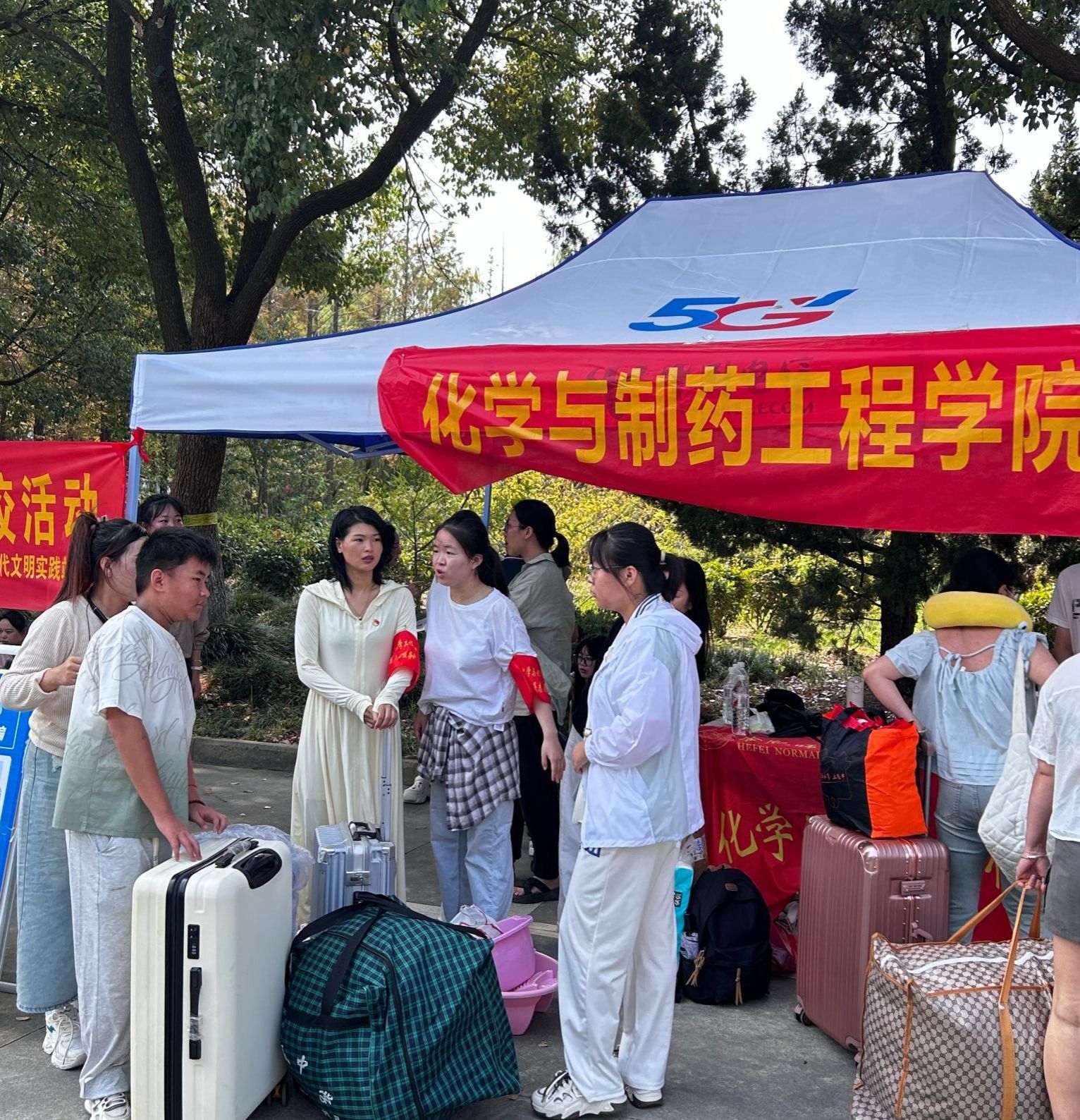 为确保迎新工作高效有序,党员志愿服务队志愿者分布在学校的各个角落,从指引新生办理报到手续,到搬运行李、解答疑问,他们无处不在。在签到处,特别设立“党员先锋岗”党员们耐心细致地为新生提供咨询和帮助,确保每位新生都能顺利完成报到流程。当遇到新生对校园环境不熟悉或遇到其他困难时,党员们总是第一时间伸出援手,用实际行动诠释着共产党员的责任与担当。