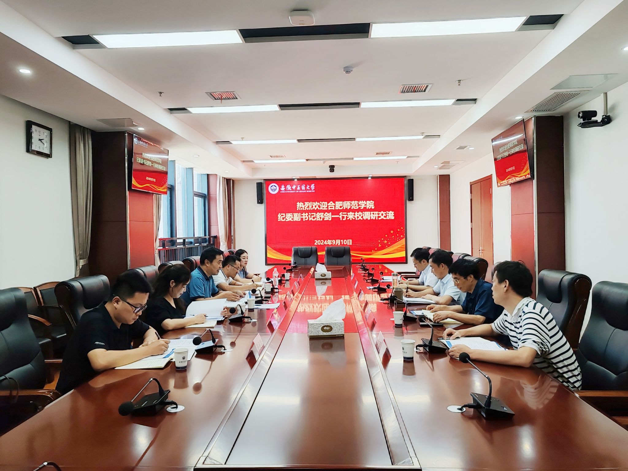日前,学院纪委办公室一行5人赴安徽农业大学、安徽中医药大学调研。安徽农业大学党委常委、纪委书记、监察专员陈文兵,纪委副书记、纪委办主任彭庆刚和安徽中医药大学纪委副书记、纪委办主任姚为久分别会见调研组一行。