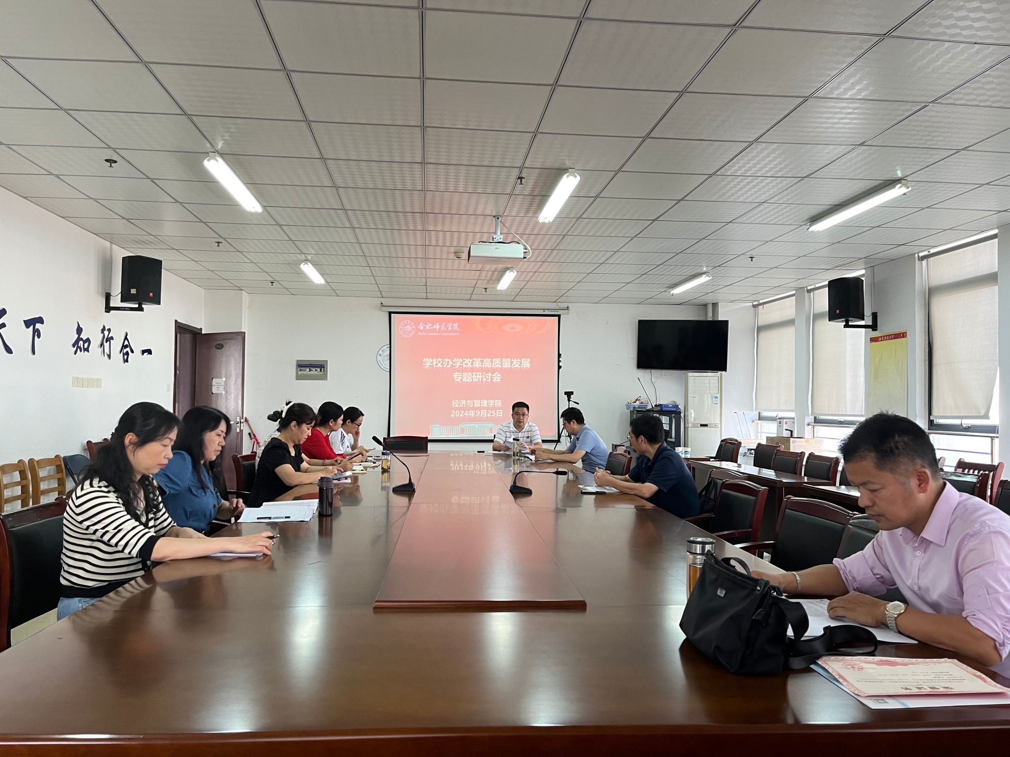 为进一步统一思想、凝聚智慧、深化共识,助推学校应用型办学转型,根据学校“大调研大讨论大行动”实施方案,9月25日下午,经济与管理学院在锦绣校区召开“全面深化应用型办学改革 奋力谱写高质量发展新篇章”大讨论,学院领导班子、各系部主任以及教师代表参加讨论会。会议由学院党委书记陈好主持。