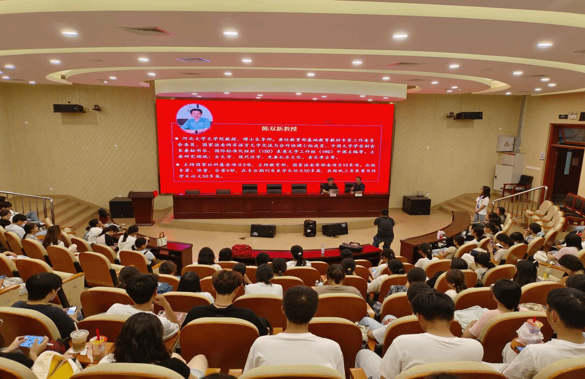 陈双新教授紧扣中文学科学生培养与科研意识的发掘,从学生的兴趣入手,分“仓颉四目”“一月半”“廿”“畺”等4个篇章展开讲解,融汇神话与历史故事,在说文解字的过程中潜移默化地引领学生走入文字学研究的殿堂。通过仓颉造字、周公制礼作乐、蔡伦造纸等历史典故,向同学们揭示古人在汇聚前人智慧的基础上开拓创新,并以此成功为人类文明的发展作出巨大贡献,鼓励同学们保持对未知事物的好奇心与探索欲,培育科研意识和创新意识。他指出,科研意识的培养对学生具有重要意义,学生在进行科研探索的过程中,能够快速理解和掌握专业知识,提升专业素养,进而为学术研究和全面发展打下坚实的基础。他希望,同学们能够在日常学习中注重培养科研兴趣、选择合适的科研课题并运用科学的研究方法,在科研实践中提升自我。