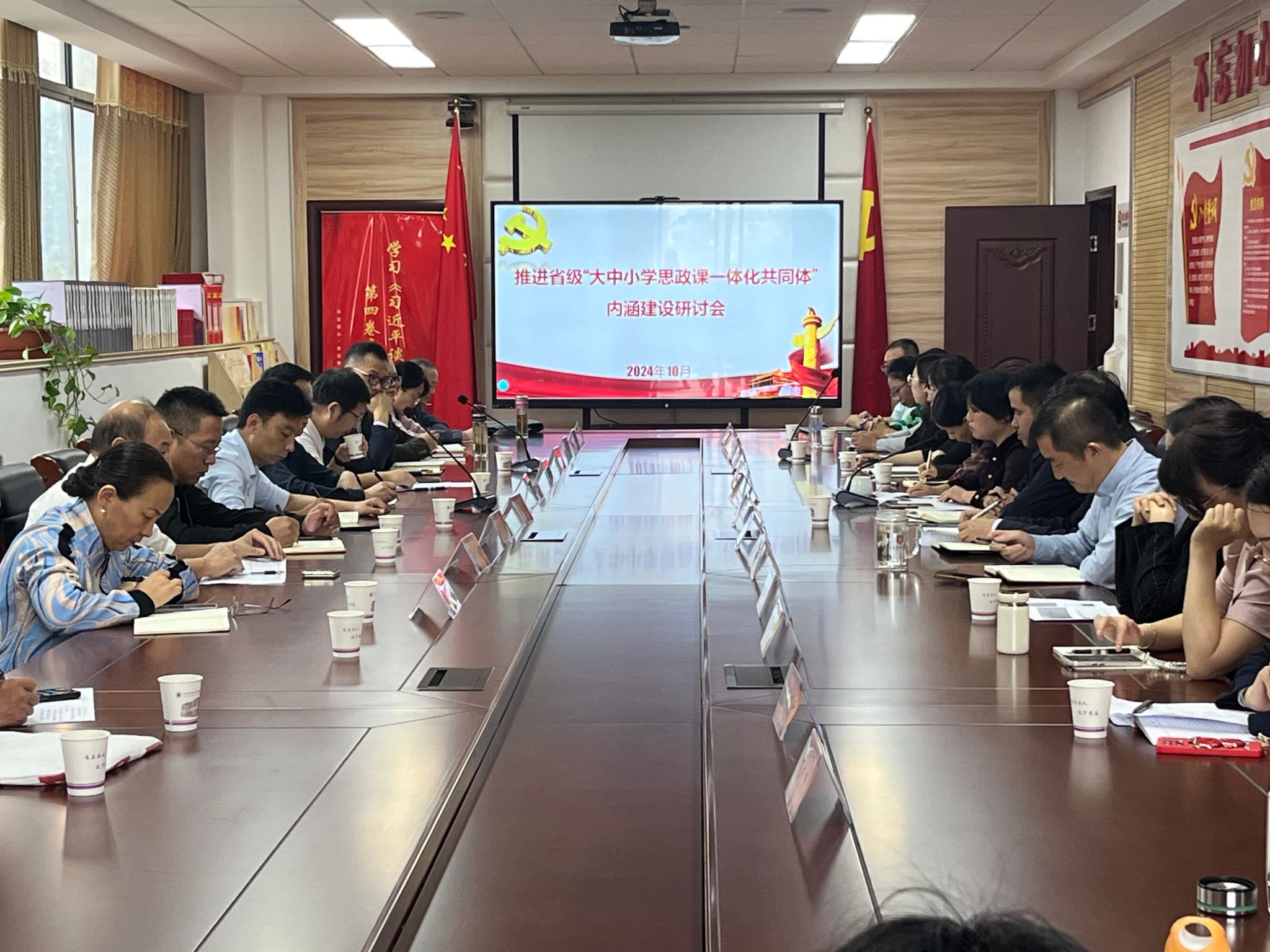 研讨会重点就大中小学思政课“同题异构”教学指南的编写工作进行了深入探讨。徐文墙提出了“五定”原则,即定人员、定时间、定框架、定主题、定进度,以确保工作的顺利进行。张少兵阐释了“同课异构”的教学理念并强调了它在推进大中小学思政课一体化建设中的重要性。徐小轩强调了提高教师内驱力和不同学段教师交互教学设计的重要性。任巧云和杨志云分别从教学策略和共建共享的角度,探讨了思政课一体化的必要性和实施方法。