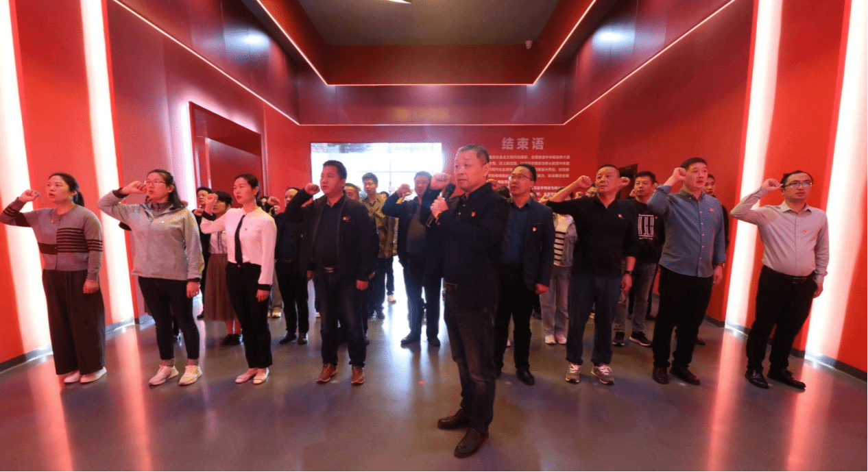在宣誓厅,后勤党总支书记傅民带领全体党员面对党旗庄严宣誓,重温入党誓词,坚守入党初心。参观结束后,大家一起观看了警示教育片。