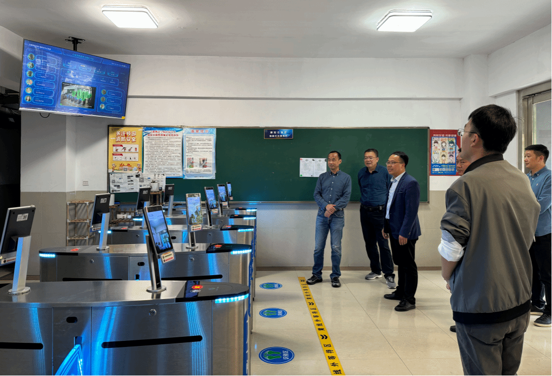 许兴旺一行现场实地考察了锦绣校区学生公寓门禁系统建设与学生公寓管理情况,学生公寓门禁系统管理人员也对公寓管理平台、人脸识别门禁、报修系统等智慧后勤的应用系统进行了现场演示与介绍。