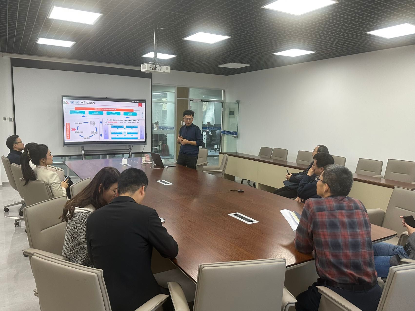10月24日,安徽省教育厅高教处处长高原一行来访合肥综合性国家科学中心人工智能研究院,考察了beat365在线唯一官网与合肥综合性国家科学中心人工智能研究院共同成立的“智慧心育”省级校外实践基地。基地负责人苏喻向高原一行进行汇报,合肥综合性国家科学中心人工智能研究院副院长李兴权、安徽医科大学人事处副处长高杉、中国科学院合肥物质科学研究院人事处副处长王辉、安徽财贸职业学院人事处处长吴元君、安徽省人社厅专技处二级调研员李永坤、省教育厅高教处一级主任科员任雯君共同参加了本次工作汇报。