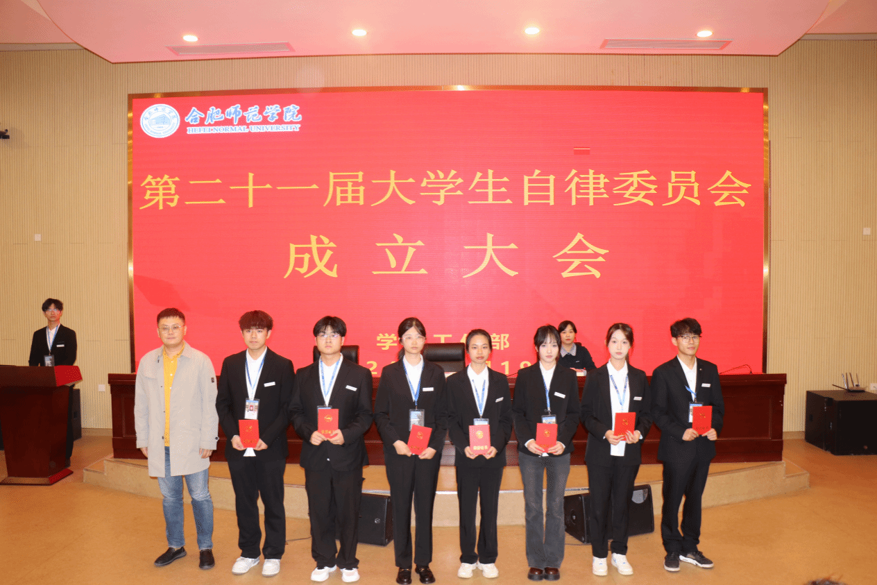 10月19日下午,第二十一届大学生自律委员会成立大会在滨湖校区学术报告厅举行。学生工作部部长刁文彬、大学生自律委员会指导教师葛畅及第二十一届大学生自律委员会全体成员参加会议。