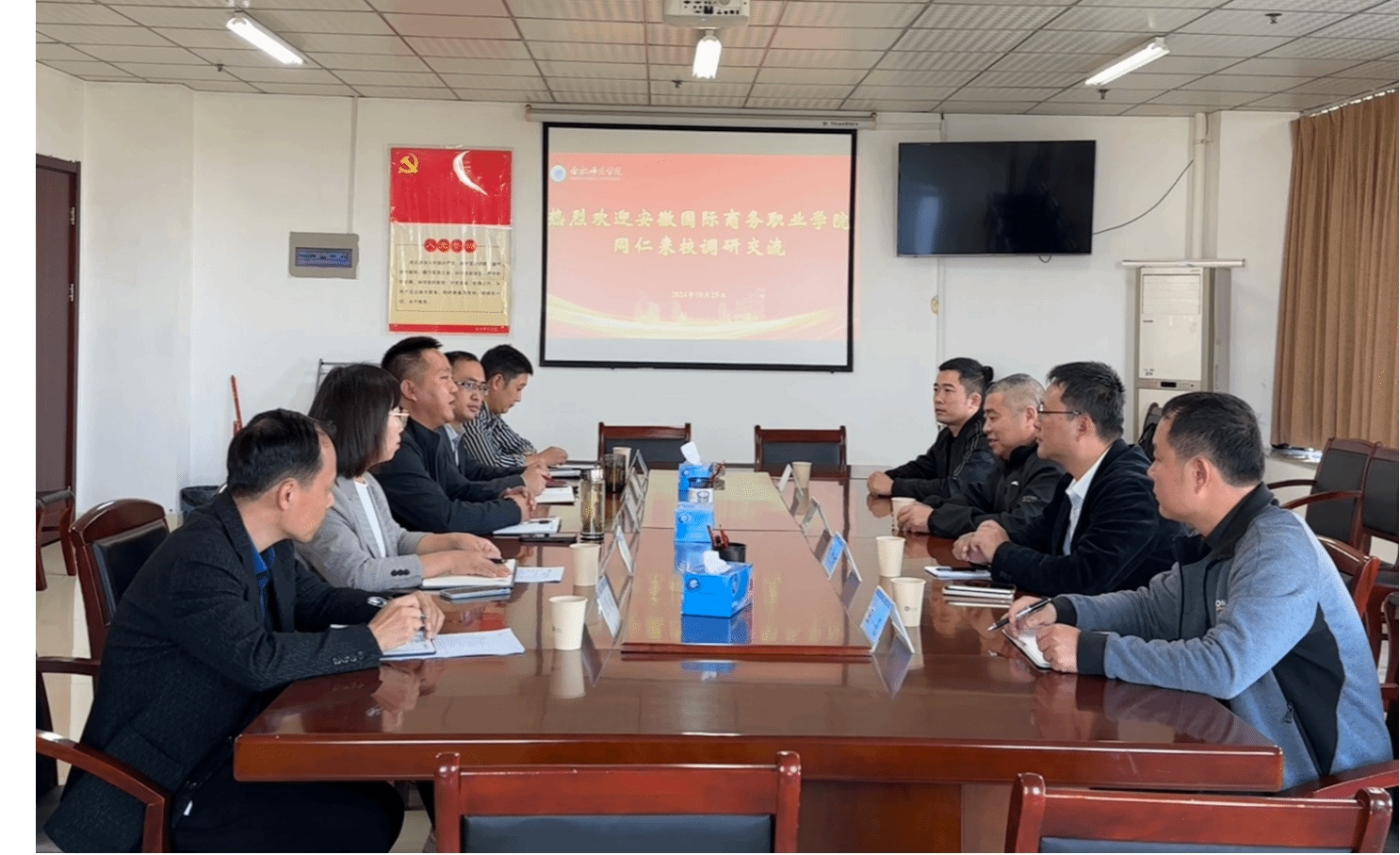 10月25日下午,安徽国际商务职业学院总务处副处长许峰、学生处副处长丁爱云一行4人来学院调研交流,后勤处(基建办)副处长丁言浩、学生处副处长尚金梅和相关科室同志参加会议。