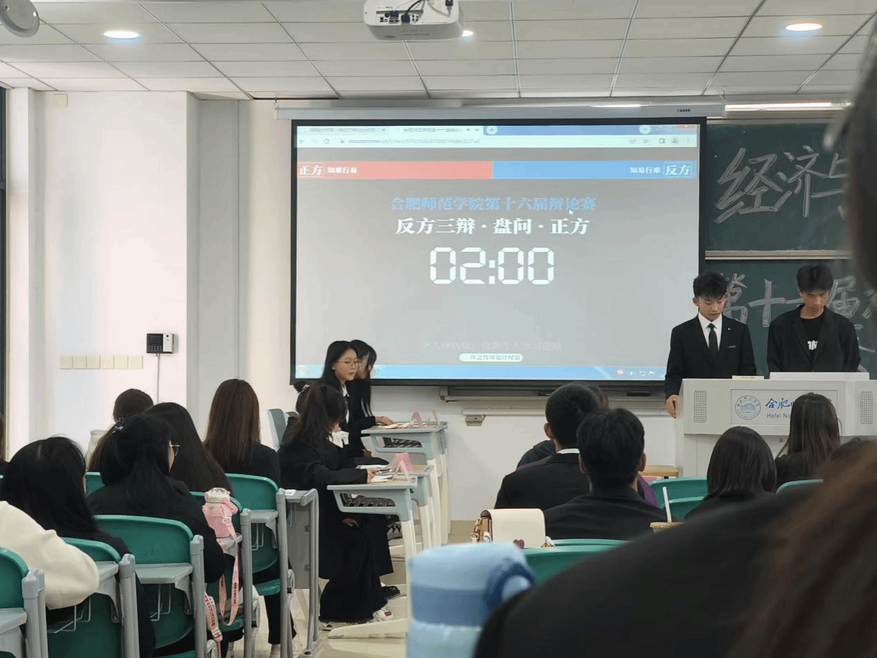 10月27日上午,由经济与管理学院举办的第十六届“思辨青春宏辩华章”主题辩论赛决赛在滨湖校区博学楼A203教室顺利举行。经济与管理学院学生会成员李想、智慧,校辩论队成员曾详锐、董祝玉应邀担任评委。