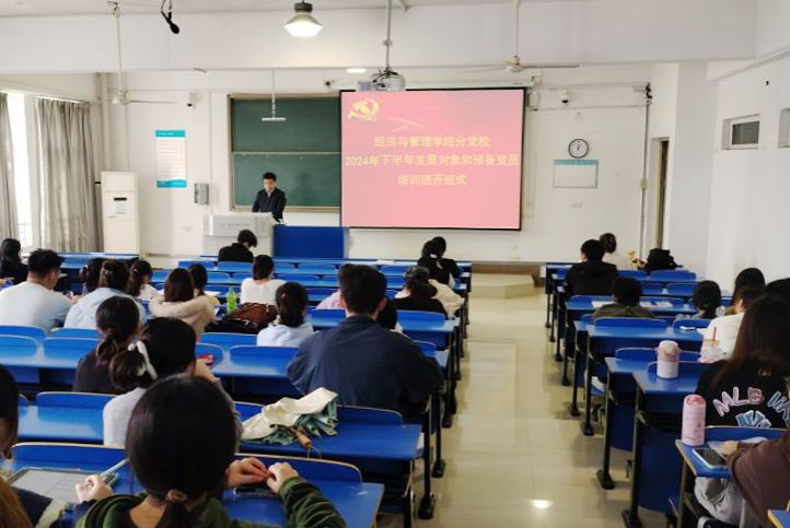 10月29日,2024下半年经济与管理学院发展对象和预备党员培训班顺利开班,74名参训学员参加本次培训。学院党委书记陈好主持开班仪式,并向参加本次培训班的发展对象和预备党员表示祝贺。随后陈好作了《中国共产党百年奋斗光辉历程和历史经验》授课活动。