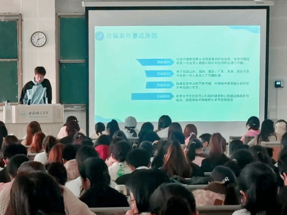 活动现场,教室内座无虚席,同学们热情高涨。主讲人从电信诈骗基本介绍、诈骗案件蔓延原因、如何根治电信诈骗、提高民众防骗意识等4个方面详细介绍了电信网络诈骗、校园贷陷阱等多种常见骗局,并分享了许多实用的防范措施。在互动环节中,主讲人耐心解答同学们的疑问,现场气氛热烈而融洽。活动结束后,同学们纷纷表示对反诈防诈有了更清晰的认识,在今后的生活中,将主动提高诈骗识别意识和能力,仔细甄别可能发生的诈骗案例,保护个人生命财产安全。