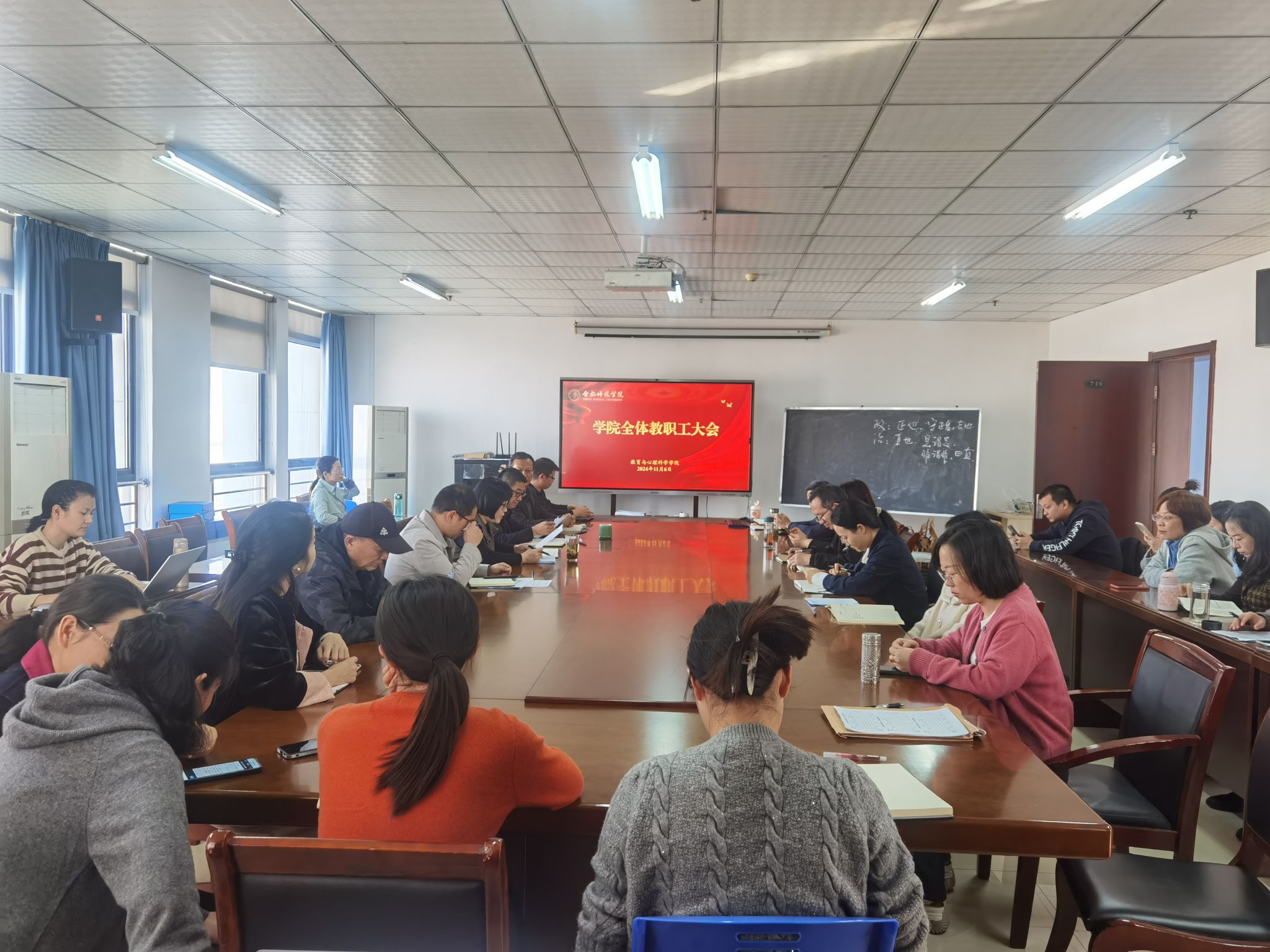 根据学院“大调研大讨论大行动”工作部署,11月6日下午,教育与心理科学学院在行知楼710会议室开展师资队伍建设高质量发展大讨论活动,全体教职工参加,会议由学院党委书记董萍主持。