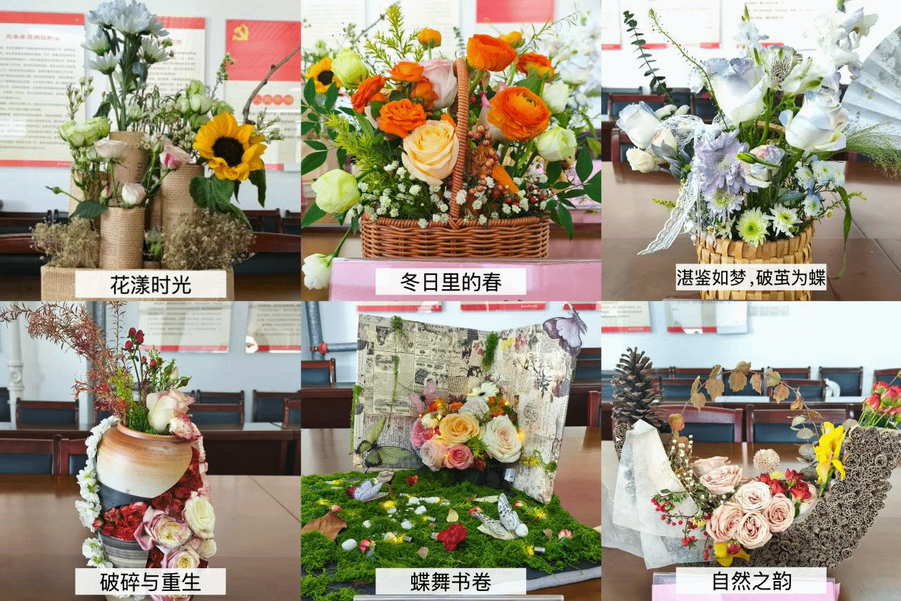 经评选,孙嘉懿小组的《破碎与重生》、张仲慧小组的《花漾时光》、荣获一等奖,晏荣荣小组的《云端花语》、卞晴晴小组的《蝶舞书卷》、唐诚硕小组的《冬日里的春》荣获二等奖,刘文丽小组的《自然之韵》、吴其丽小组的《蝶舞翩跹,绘美丽家园》、胡晨蕊小组的《雅韵花语,语韵花香》、时新雨小组的《湛鉴如梦,破茧为蝶》、毛梦可小组的《花海星象:绽放个性的璀璨》荣获三等奖。