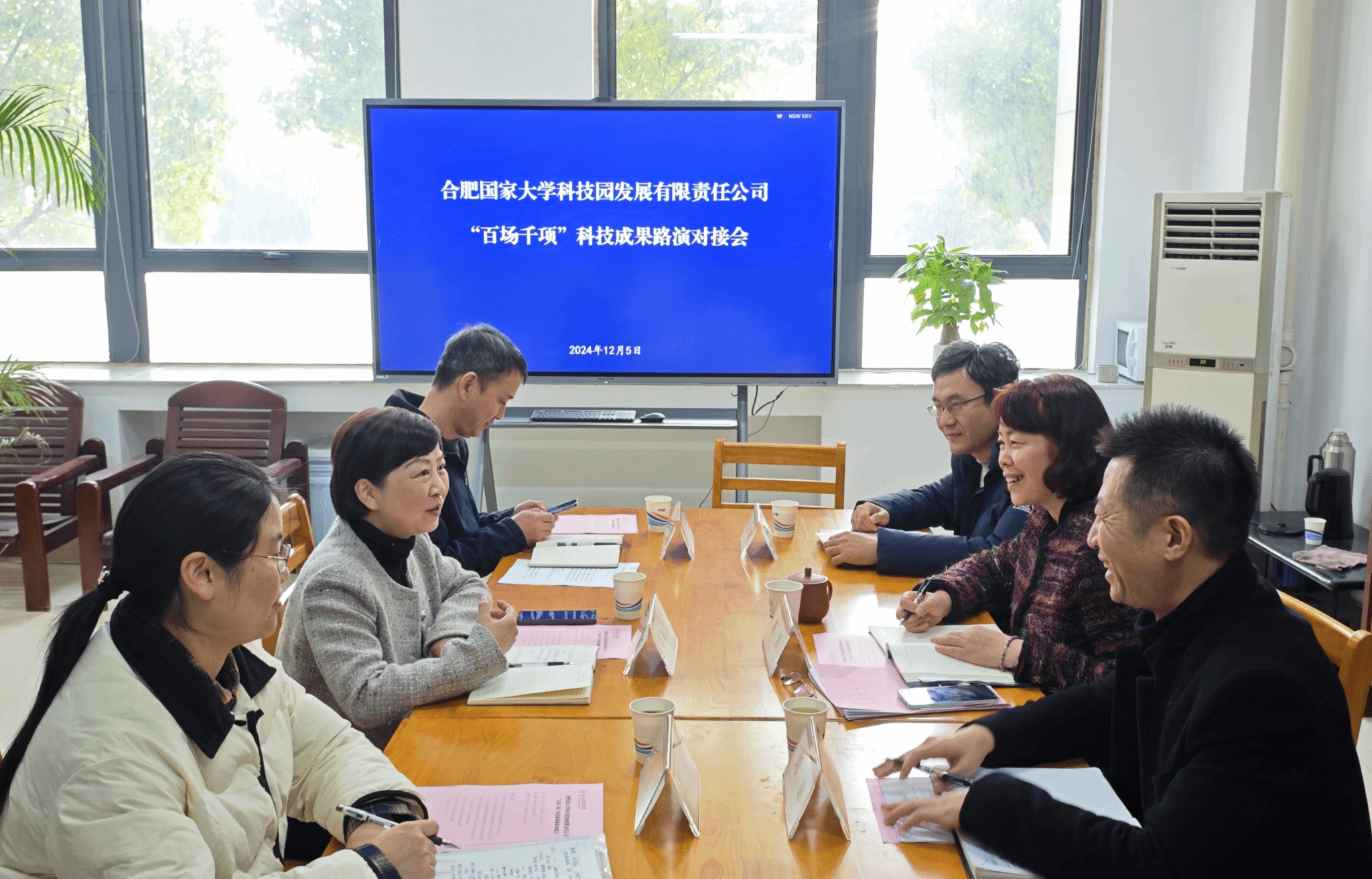 为贯彻党的二十大以来关于教育、科技、人才重要决策部署,深刻领会党的二十届三中全会关于深化教育综合改革重要论述,根据《安徽省教育厅关于开展安徽省高校“百场千项”科技成果路演活动的通知》(皖教秘科〔2024〕112 号)要求,落实“完善高校科技创新机制,提高成果转化效能”这一关键任务,12月5日下午,安徽省高校“百场千项”科技成果路演活动对接会在行知楼109会议室举行。合肥国家大学科技园发展有限责任公司董事长斯映红,孵化管理部经理卫萍、副经理杜明,我院部分理工科教师代表以及科研处相关工作人员参加本次会议。会议由科研处处长胡昂主持。