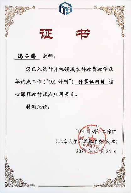近日,计算机领域本科教育教学改革试点工作计划(简称“101计划”)工作组公布了“计算机领域本科教育教学改革试点工作计划第四批教材试点应用项目”,共有来自武汉大学、重庆大学、辽宁大学等多所高校的112个项目获批立项,我院教师冯玉婷负责的《计算机网络》课程被认定为本批教材试点应用课程。