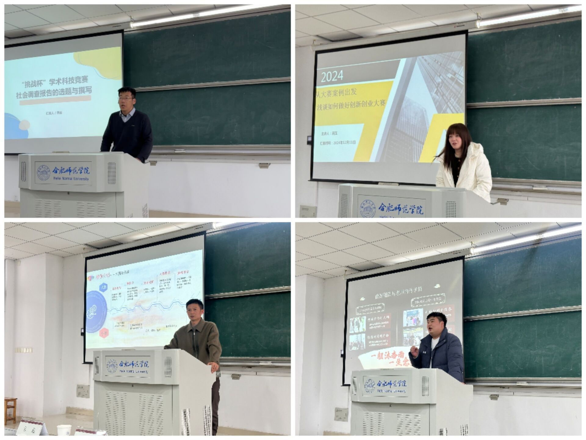 活动中,指导教师、获奖学生与青年学生分享经验,畅谈体会,交流心得。计算机与人工智能学院团委书记宗彪、电子信息与集成电路学院辅导员周玉、电子信息与集成电路学院吴杰,分别围绕《挑战杯学术科技竞赛社会调查报告的选题与撰写》《大学生创新创业大赛赛事经验分享》《2025年“挑战杯”大学生课外学术科技作品竞赛赛事解读》等主题,进行了经验分享和工作介绍,为同学们提供了宝贵的参赛指导。此外,学院匠心筑梦创新创业工作室负责人申祥同学也介绍了获奖项目情况,分享了参赛经历,并提出了具体的意见建议。活动的开展,让与会学生深受启发,进一步激发了他们参与科技创新和学术竞赛的热情。