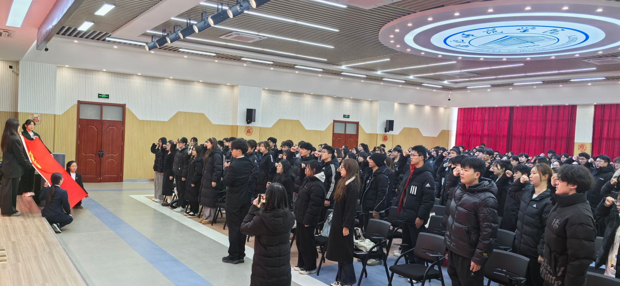12月19日和26日,学院2024年新团员入团仪式于锦绣校区大学生活动中心和滨湖校区学术报告厅举行。院团委书记刁文彬、院团委副书记何磊,院团委姚瑶、魏晓倩、钟树旺,2024年全年新入团的460名团员参加仪式。