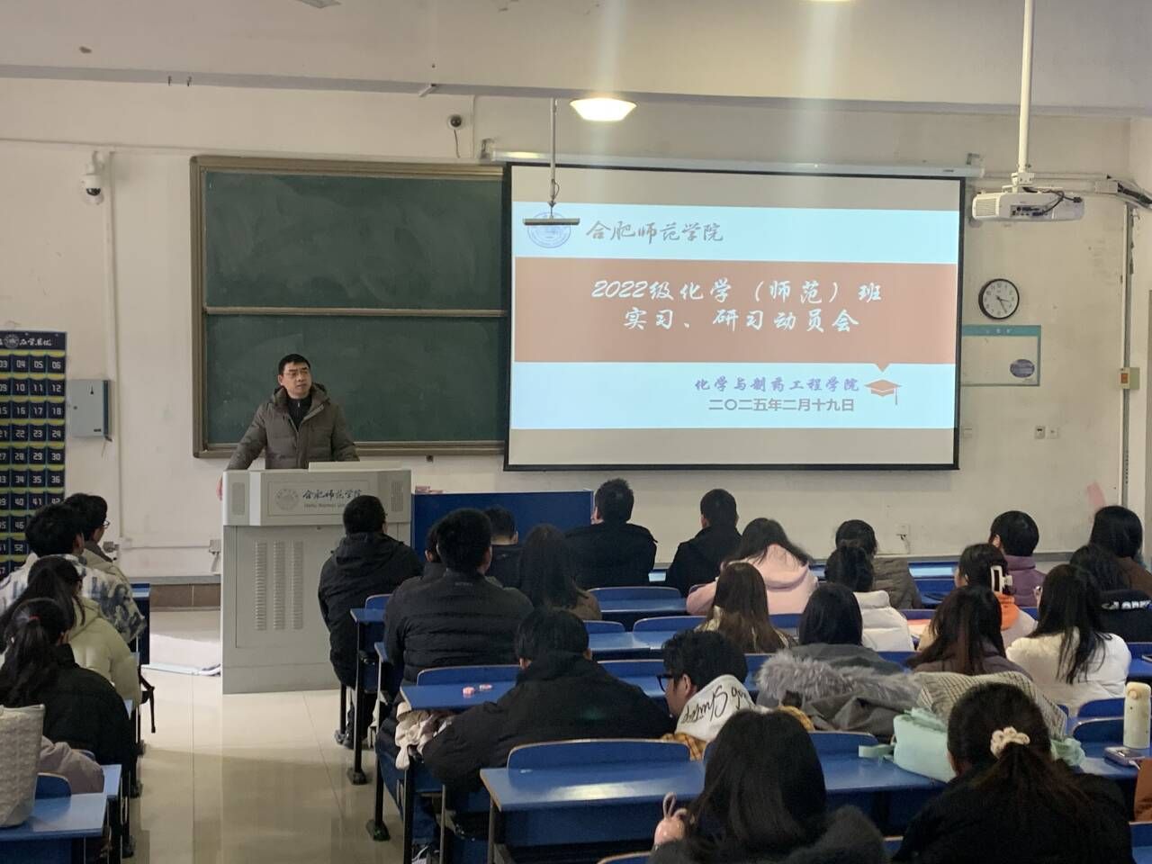 2月19日,化学与制药工程学院在锦绣校区逸夫楼召开“实习、研习”动员大会。学院副院长董雄辎教授出席会议,动员会由系主任凌波主持,化学教育系全体指导教师和2022级化学专业全体学生参加会议。