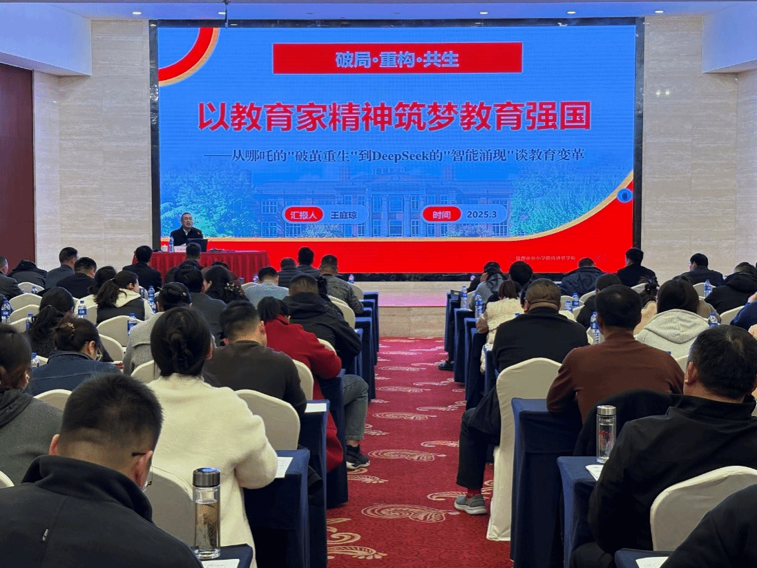 培训会上,蚌埠市教师进修学校党支部书记、校长王庭琼对各位参训老师进行名为《以教育家精神筑梦教育强国:破局·重构·共生》的授课,课程分为五个部分,分别是教育家精神的内核与价值、破局之路:教育场景重构、共生发展:教育生态建设、面向未来的教育家精神、成长密码:从“优秀”到“教育家”。王庭琼专家从哪吒的“破茧重生”到Deepseek的“智能涌现”谈教育变革,深入生活实际,参训老师认真听讲,受益良多。(教育与心理科学学院:谢威士 唐银)