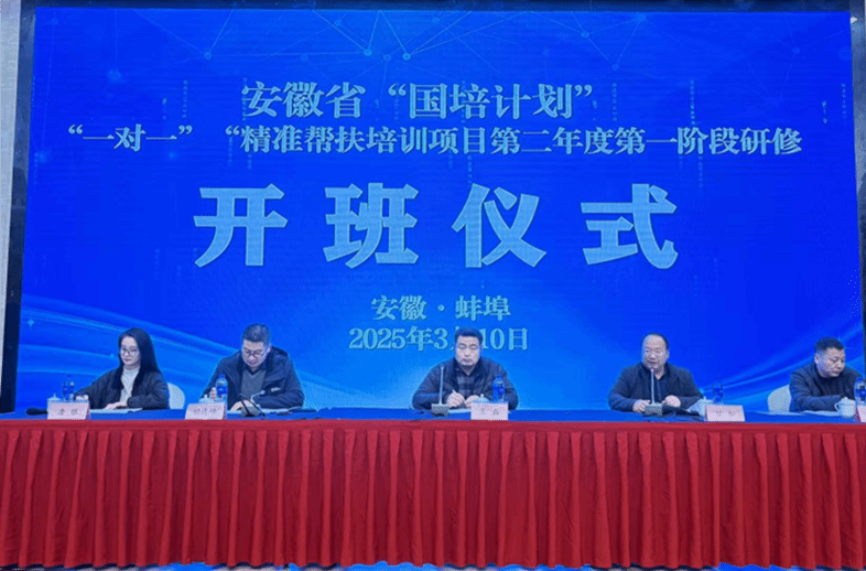 3月10日上午,2025年安徽省“国培计划”“一对一”精准帮扶培训项目第二年度第一阶段研修在蚌埠顺利开班。beat365在线唯一官网继续教育学院副院长王磊、教育与心理科学学院副院长胡连峰、文学院副院长甘松、教育与心理科学学院培训部主任谢威士、班主任代表唐银出席开班典礼。来自阜阳市临泉颍东和阜南颍上的210多名老师参加开班典礼,仪式由王磊主持。