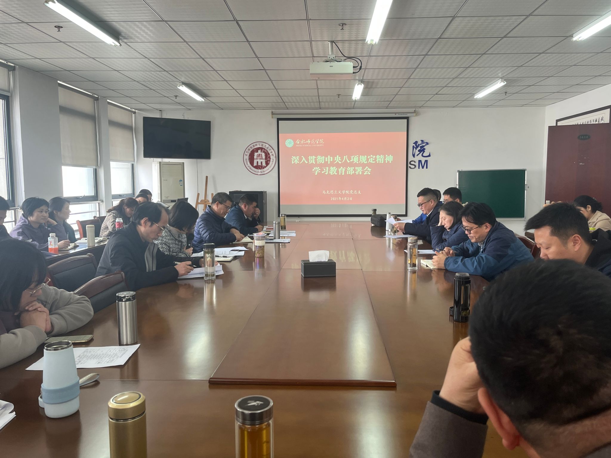 4月2日下午,马克思主义学院党总支召开深入贯彻中央八项规定精神学习教育部署会,布置学院学习教育工作。会议由党总支书记刘艳主持,全体教职工参加会议。