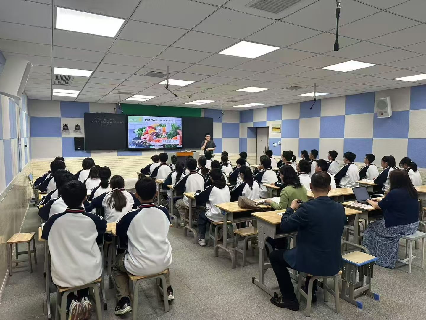 4月9日上午,陈英与肖菲一行抵达芜湖市南陵县春谷中学。该校优秀青年教师董俊是外国语学院 2013 届毕业生,他以七年级下册 Unit 7《Eat well》为课例,呈现了一堂精彩的听说教学课。董俊凭借扎实的教学基本功、清晰的教学思路和灵活多样的教学方法,充分地调动了学生积极性,课堂氛围活跃。其教学设计科学规范,教学情境设计巧妙,教学内容挖掘有深度,听与说技能链接有效,跨学科知识有机融入,引导学生从理解内容迈向批判性思考,有效实现了语言输入到输出的跨越。AI 工具的巧妙应用更为课堂增色不少。肖菲称赞这是她一年来听到的最好的一节课,陈英副教授也高度评价董俊的授课,认为其充分展现了外国语学院人才培养的优秀成果。同时,陈英针对授课过程中可进一步探讨之处提出建设性意见,为董俊及其他听课教师提供了宝贵的教学思路和方法。
