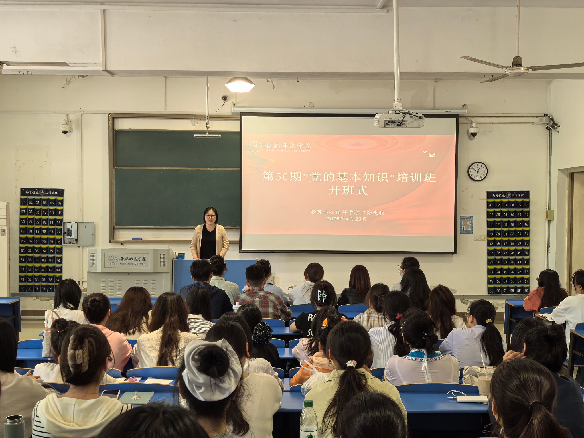 为进一步做好新时期党员发展工作,加强对学生入党积极分子和发展对象的教育、培养,4月23日,教育与心理科学学院党委分党校第50期“党的基本知识”培训班在逸夫楼A105顺利开班。学院党委书记董萍出席开班式并作动员讲话,锦绣校区全体入党积极分子、发展对象参加。开班式由培训班班主任张傲娜主持。