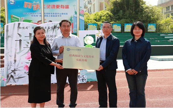 4月23日,在合肥市第四十八中学滨湖教育集团华山路校区“和悦阅”阅读课程发布暨首届读书节启动现场,文学院院长何旺生、副书记夏娟与包河区教体局党委委员胡冬梅、48中滨湖教育集团理事长张伟共同为“经典阅读与文化传承实践基地”揭牌。此基地落户合肥市第四十八中滨湖教育集团,标志着文学院在推进基础教育协同育人平台建设迈出坚实而重要的一步。