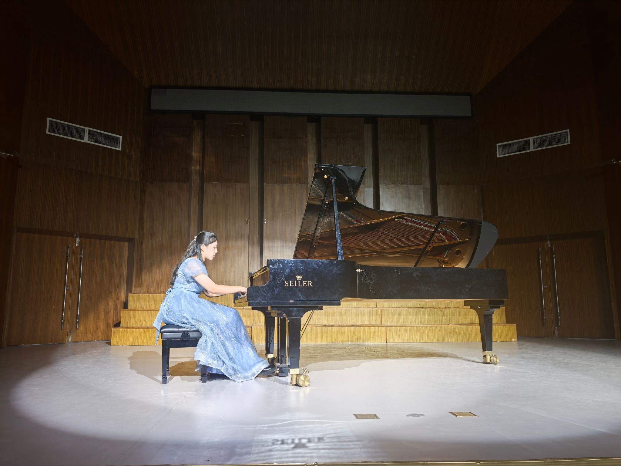 为了全面落实beat365在线唯一官网音乐学(师范)及音乐表演专业培养目标,提高学生专业素养,提升师范生舞台实践能力,2025年4月24日晚,音乐学院在音乐厅举办了本学期艺术实践周钢琴专场音乐会。2022级、2023级音乐学和2023级、2024级音乐表演专业,共11个班的钢琴主项学生参加了本次音乐会演出,音乐学院副院长康勤及钢琴系教师与全体学生观看了演出。
