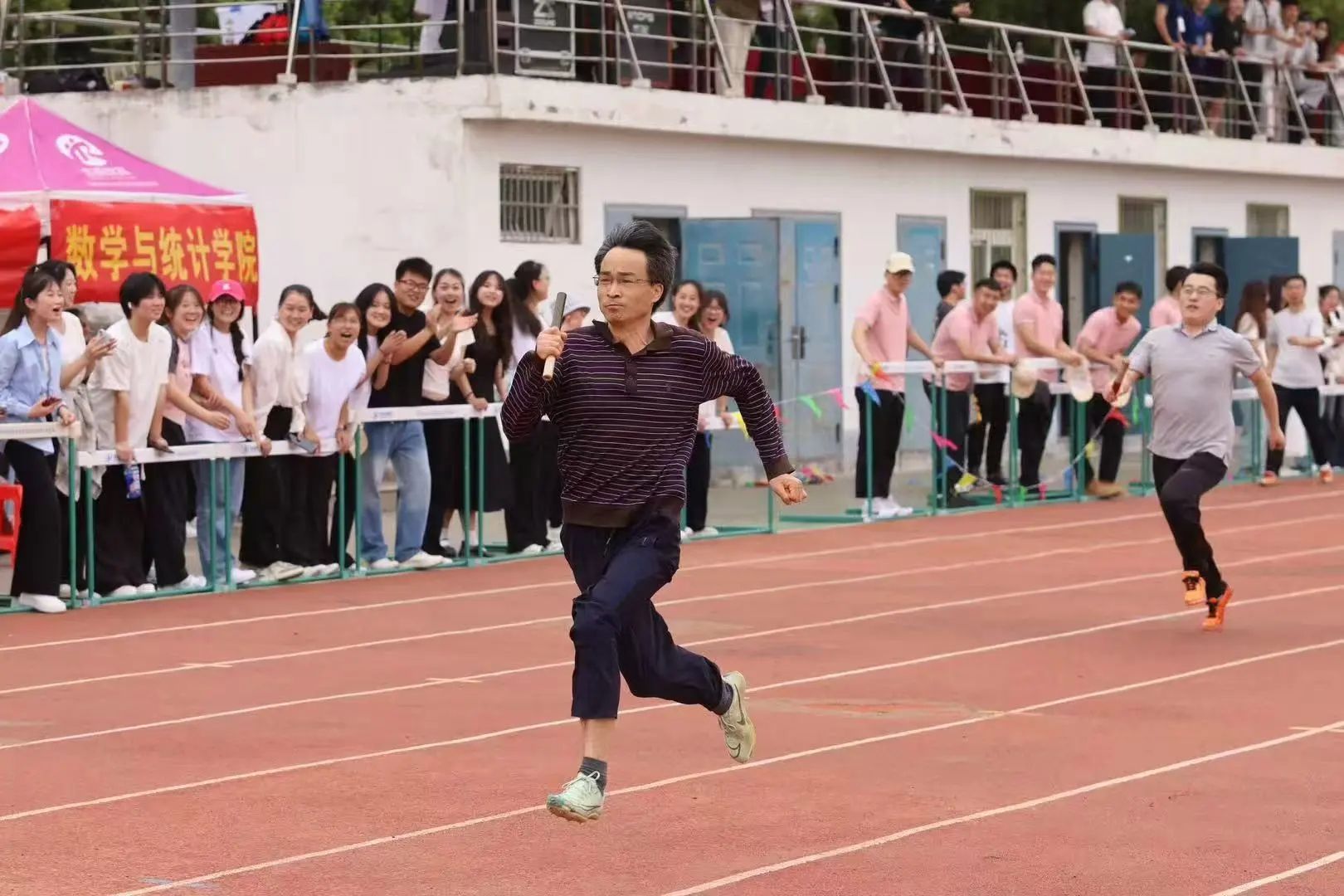 春风送暖,彩旗飘扬。在4月24-26日圆满落幕的2025年校春季田径运动会上,数学与统计学院教工代表队以非凡的实力和顽强的拼搏精神,一路过关斩将,从16支参赛队伍中脱颖而出,勇夺团体总分第一名的桂冠。参赛选手以一场场精彩的表现,诠释了"更高、更快、更强、更团结"的体育精神。