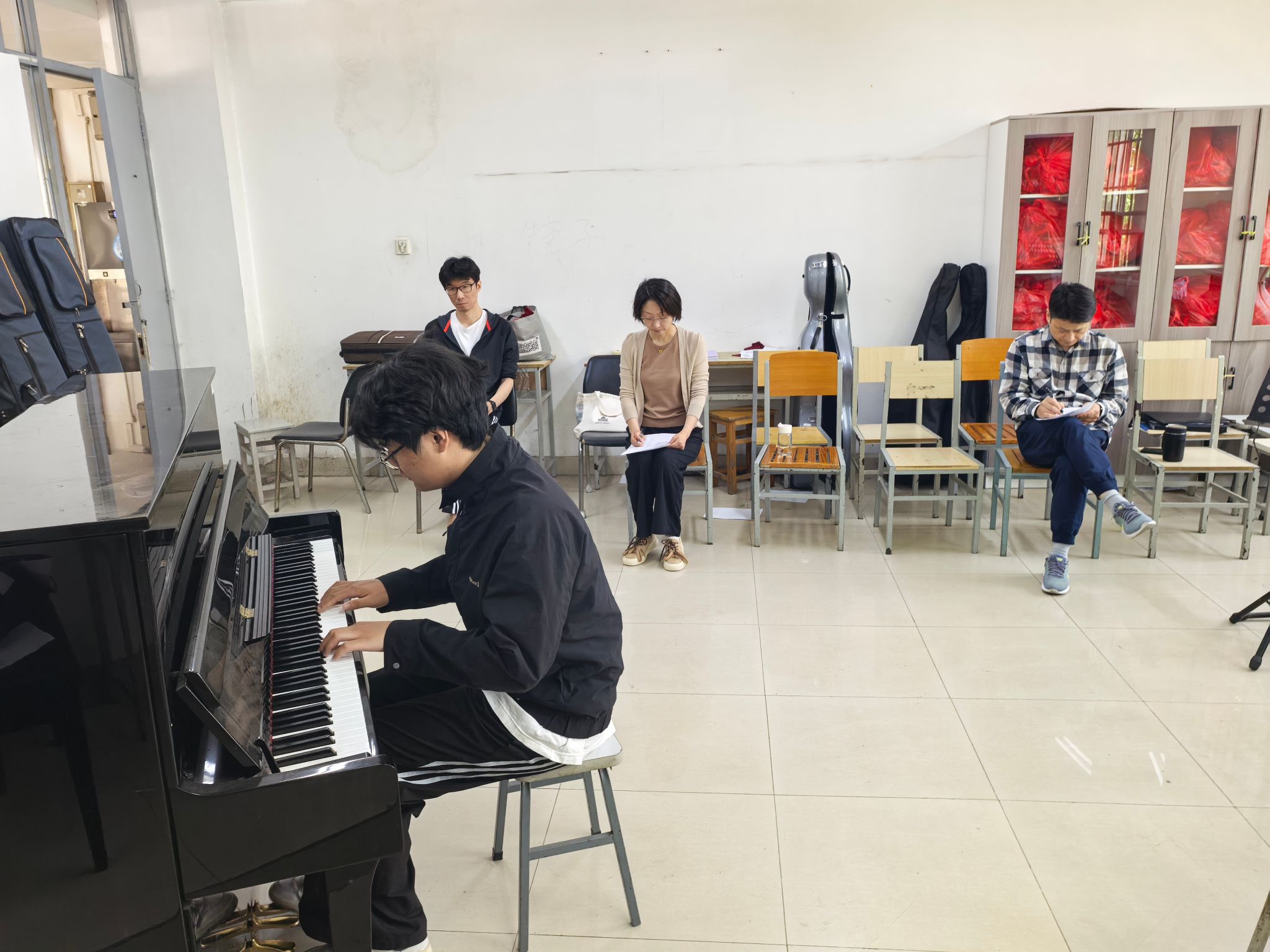 自弹自唱比赛作为音乐师范生的“必修课”,同样亮点纷呈,令人目不暇接。参赛学生们自信满满地登上舞台,指尖在琴键上轻盈舞动,歌声与旋律完美融合,仿佛奏响了一曲曲动人的乐章。通过这场比赛,同学们不仅检验了日常训练的成果,更清晰地认识到了自身的优势与不足。一位23级的同学深有感触地说道:“这次比赛让我深刻体会到,自弹自唱这项技能不仅是专业能力的体现,更是我们未来站上讲台、传道授业的底气所在。它时刻鞭策着我要勤加练习,不断追求卓越。”