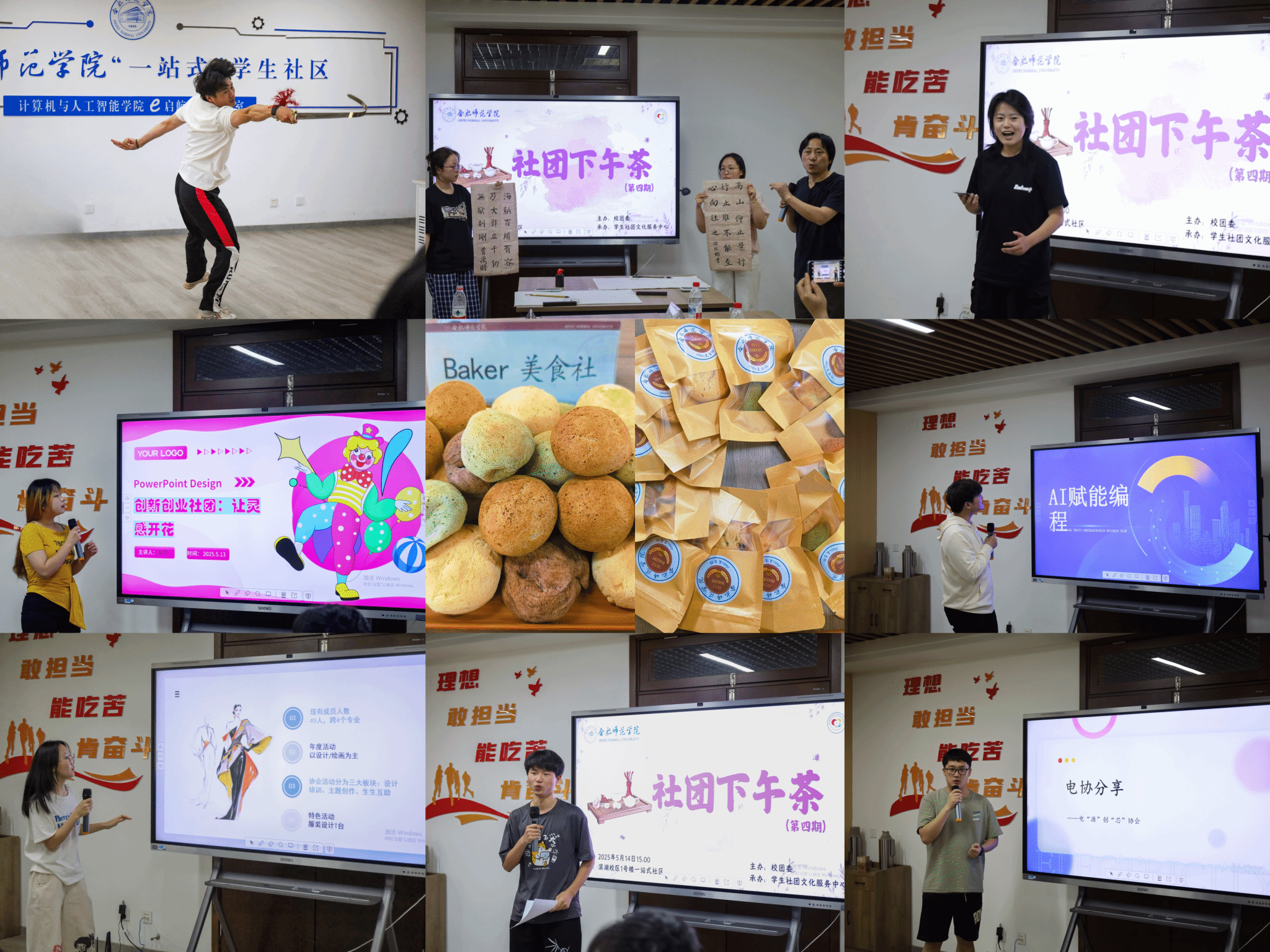 在风采展示环节,各社团依次亮相:止戈武术协会带来刚健有力的《哪吒舞》;服装设计协会以创意作品展现专业风采;大学生创新创业协会分享实践成果;Baker美食社现场介绍特色美食;大学生书画协会带来《妙笔生花记》书法展示;演讲与辩论协会以精彩演讲传递观点;电源创芯协会与C语言编程协会分别带来科普与技术分享;文记赏馨曲艺社的京剧串烧将活动推向高潮,多元展示,是各社团特色定位及团队能力的集中体现,充分彰显了社团的精神与活力。