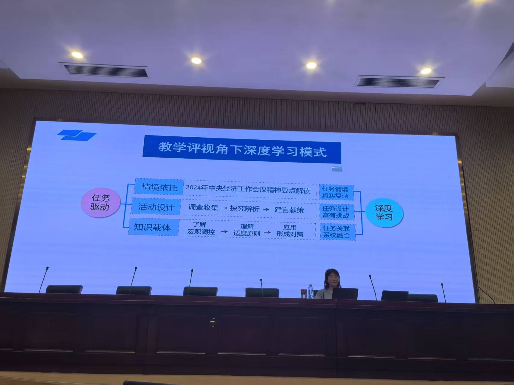 为引导思想政治教育专业师范生加强专业认同,了解当前我国中学思政课教学最新理念,树立训练教学能力的能动性,5月15日上午,合肥168中学名师黄婷老师应邀在滨湖校区学术报告厅做题为“解构重构之间:教学评视域下深度学习的路径”学术讲座。马克思主义学院2023级、2024级思想政治教育专业本科生160余人参加本次讲座,讲座由马克思主义学院副院长方政主持。