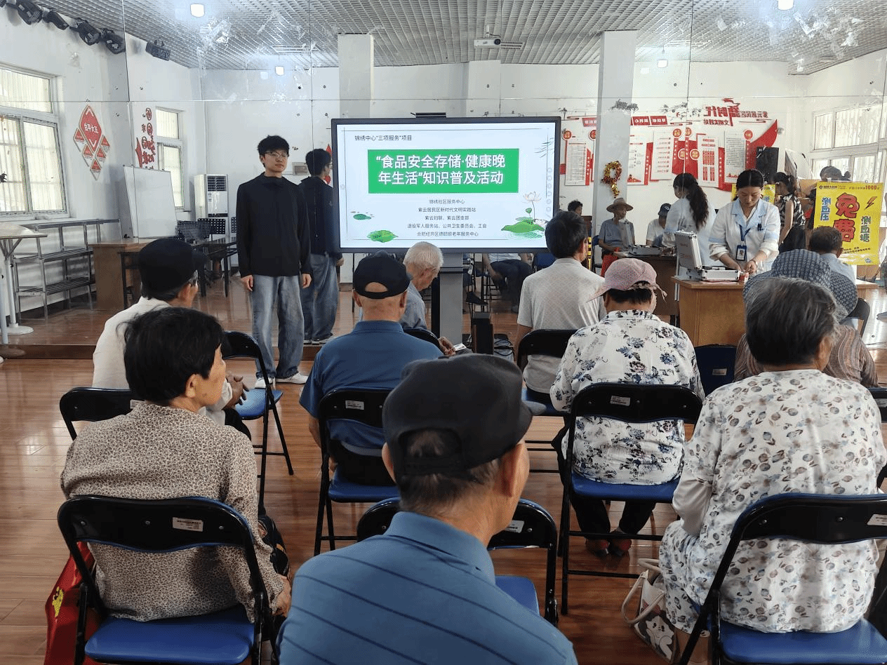 志愿者们围绕“守护银铃舌尖安全—社区老年人食物储存安全”主题,从粮食干货、蔬菜水果、肉蛋奶熟食等常见食物储存误区入手,结合生动案例,向老年人讲解错误储存方式的危害,如粮食受潮滋生黄曲霉毒素、蔬菜水果混放加速腐烂、肉蛋奶保存不当引发细菌污染等。同时,细致传授科学储存方法,包括粮食密封罐储存、绿叶菜沥干水冷藏、肉品生熟分开存放等实用技巧,还针对保健品、自制食材等特殊食物储存及厨房储存环境管理、误食变质食物应急处理进行科普。