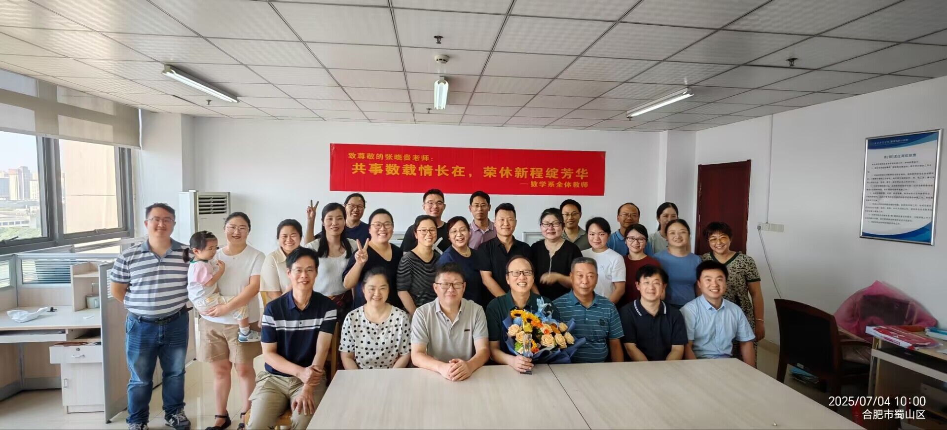 为加强对退休教师的关怀,增强教师的集体荣誉感与归属感,弘扬尊师重教传统,传承育人初心,7 月 4 日上午,数学与统计学院在行知楼 1102 会议室为张晓贵老师举办光荣退休仪式,全体教职工共同见证这一温情时刻,仪式由学院党委书记穆娟主持。