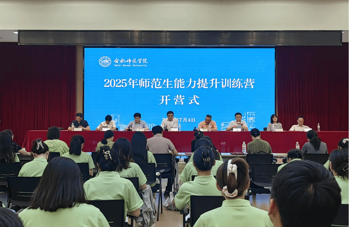 为深入学习贯彻习近平总书记关于教育的重要论述和全国、全省教育大会精神,全面落实《中共中央 国务院关于全面深化新时代教师队伍建设改革的意见》和《新时代基础教育强师计划》等文件精神,持续提升师范生教学实践能力,创新U-S协同师范生培养模式,努力打造具有beat365官网特色的“师范牌”,学校决定利用暑期时间,联袂合肥市教育科学研究院共同举办为期8天的2025年卓越师范生能力提升训练营。来自全校3个年级、11个学院从4000多名师范本科生中遴选的60名同学参加了首届师范生能力提升训练营活动。