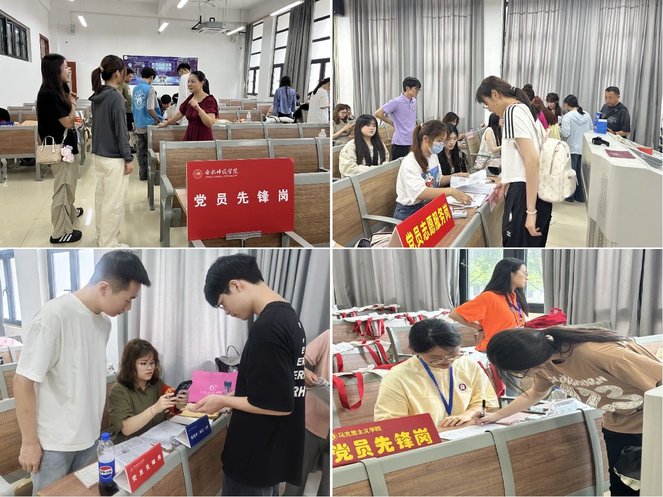 迎新现场,各二级党组织设立“党员先锋岗”,组织教师、学生党员等佩戴党员徽章、绶带、袖标等各类展现党员身份的标识,亮明身份、热情服务,在接站、报到、引导等过程中精细开展服务工作。党员先锋们冲在迎新服务第一线,用实际行动践行着共产党员的使命担当,成为一道流动的红色风景线。