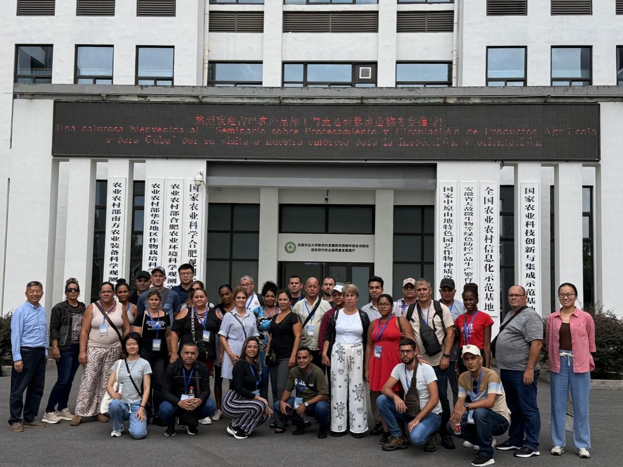 9月9日至11日,商务部举办、农业农村部管理干部学院承办的2025年“古巴农产品加工与流通研修班”安徽考察交流活动在合肥举行。活动期间,外国语学院2022级西班牙语班齐钰婕和贺春凤同学作为外语志愿者全程参与,为古巴学员提供专业语言服务与行程协助。