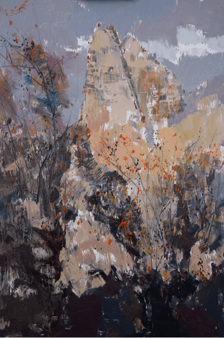 李教授从构图取舍开始,一步步为现场师生解析油画风景创作的流程。他并未拘泥于对自然景象的简单复制,而是强调“师造化,得心源”的转化过程。“画室中的风景创作,应变被动为主动地经营意境”李教授一边调和色彩,一边阐述,“创作目的不是在画布上复制一片风景,而是要通过形色与笔法的组织,创造出一个符合画面逻辑和个人情感的‘自然’。”现场师生凝神观摩,从铺陈大色调到勾勒点睛细节,不愿错过任何一个环节。画室内静谧而专注,唯有画笔与画布的交响,以及偶尔迸发的精彩讲解。
