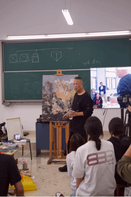 秋意渐浓,滨湖校区美术与设计学院的画室内却暖意融融,洋溢着专注而热烈的艺术气息。9月25日下午,继上午的专题学术讲座后,杰出校友李成民教授在此开展了一场独具特色的风景油画现场示范。本次活动将创作现场置于画室之内,旨在如何将自然界的广阔气象,提炼重构于方寸画布之上。