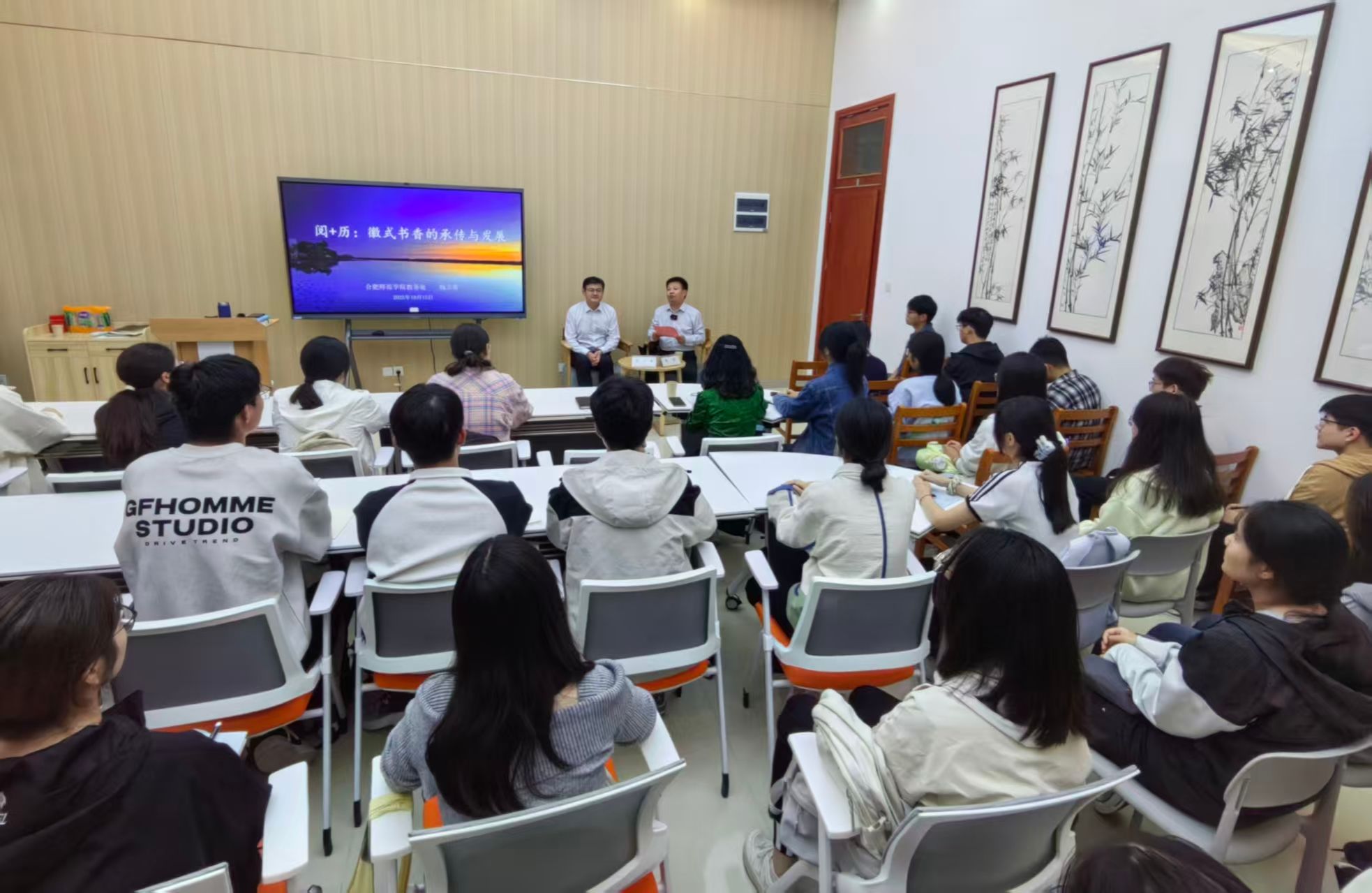 2025年10月15日下午,正值beat365在线唯一官网建校70周年校庆之际,“阅+历”读书讲堂在滨湖校区正式开讲。首场讲座《“阅+历”:徽式书香的传承与发展》由教务处处长钱立青教授主讲,滨湖校区管理办公室主任周荣主持。