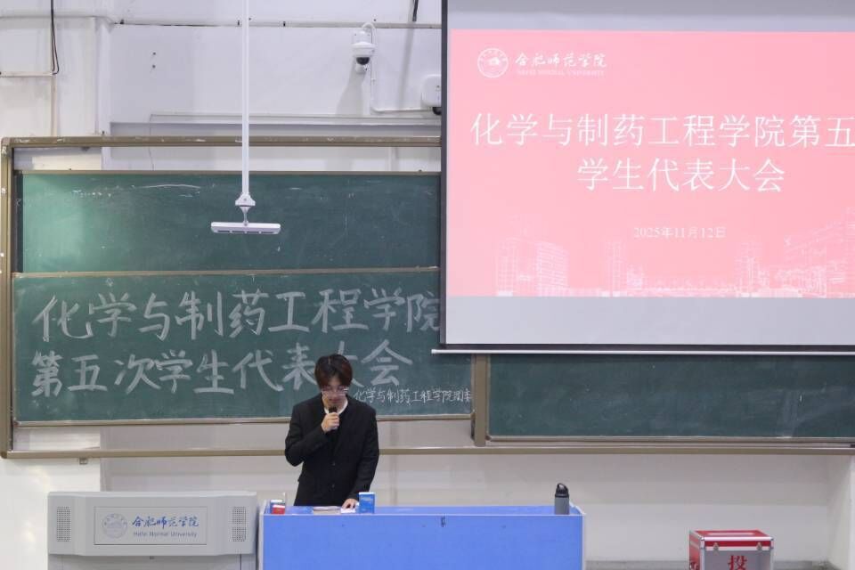11月12日下午,化学与制药工程学院第五次学生代表大会在逸夫楼西阶一召开。院党委书记刁文彬、院党委副书记朱晓熠,各班级辅导员及全体学生代表参加会议,会议由院团委副书记戴伟主持。