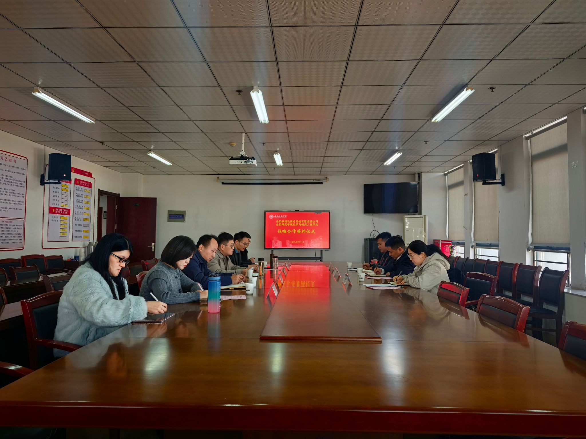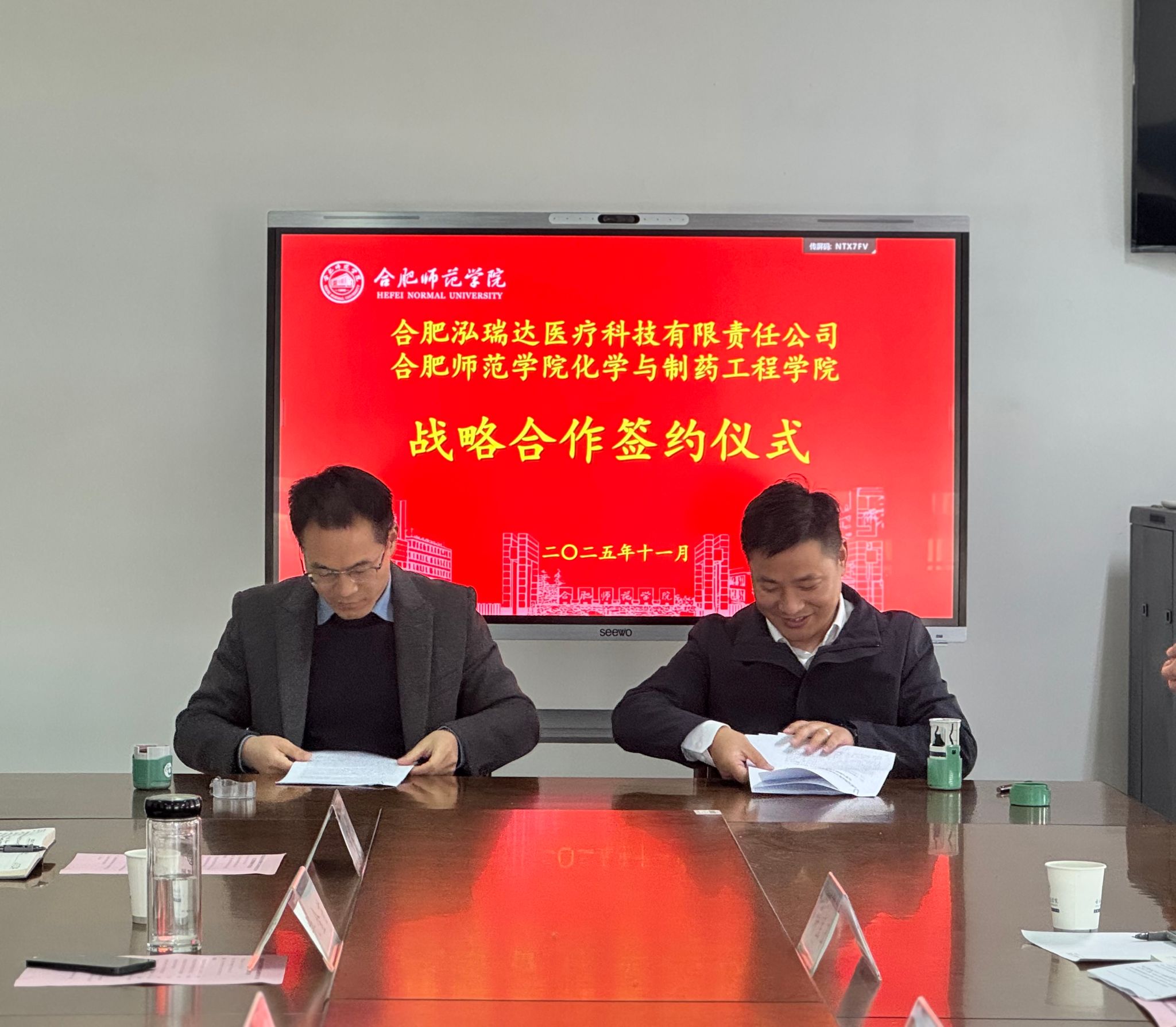 11月18日下午,合肥泓瑞达医疗科技有限责任公司与化学与制药工程学院战略合作签约仪式在行知楼1402会议室举行。合肥泓瑞达医疗科技有限责任公司副总经理段祥坤、财务总监欧元芳、总经理助理许宝玉,beat365在线唯一官网科研处副处长王伟,化学与制药工程学院党委书记刁文彬、院长朱金苗、副院长董雄辎、党委副书记朱晓熠及学院教师代表参加活动。