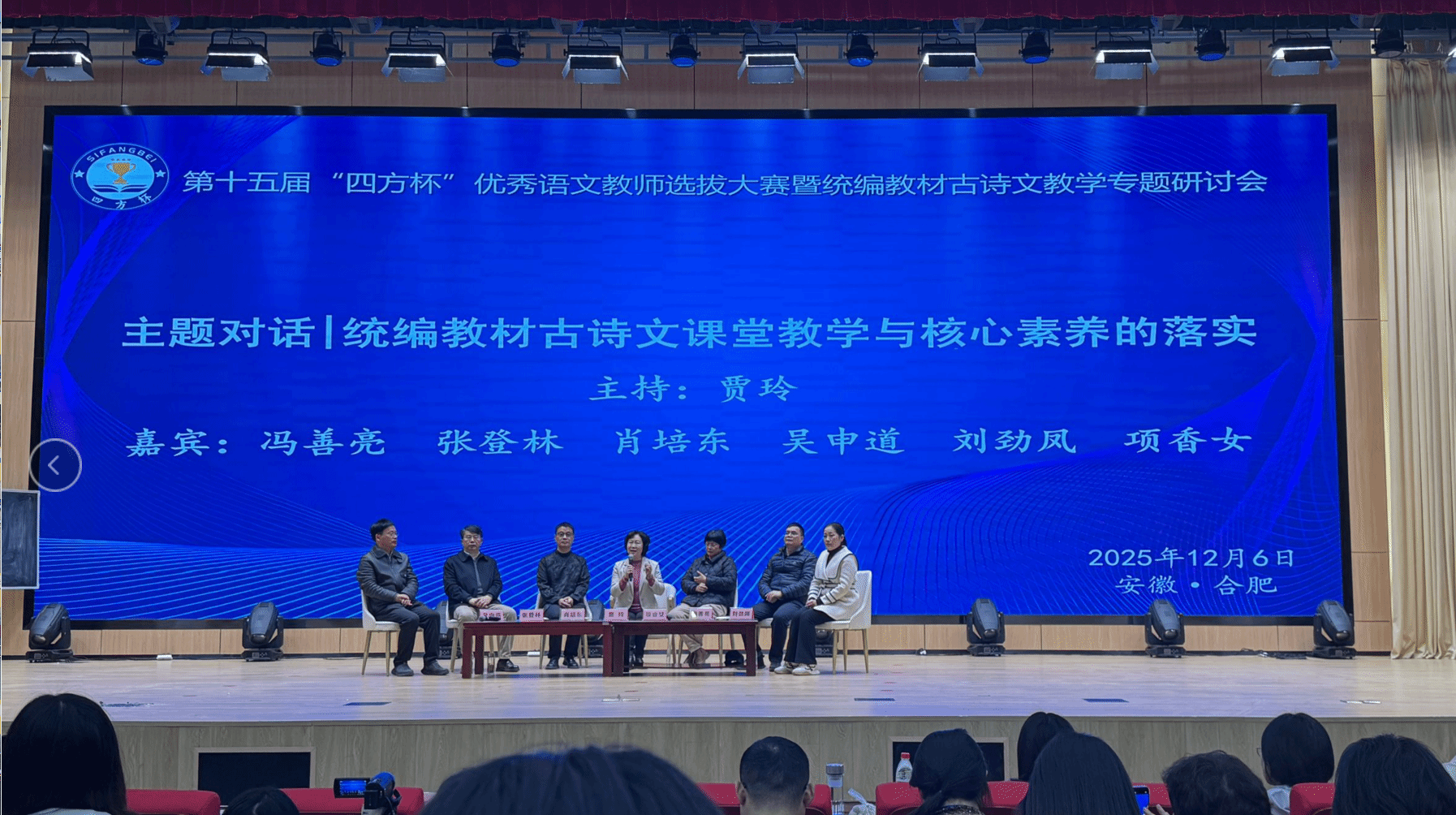 12月5日—6日,第十五届“四方杯”全国优秀语文教师选拔大赛暨统编教材古诗文教学专题研讨会在合肥中国科大附中高新中学举行,文学院2025级语文教育硕士研究生在胡启文、李和平老师带领下参加教学大赛观摩与教学研讨活动,在沉浸式学习中夯实专业基础、拓宽教学与研究视野。