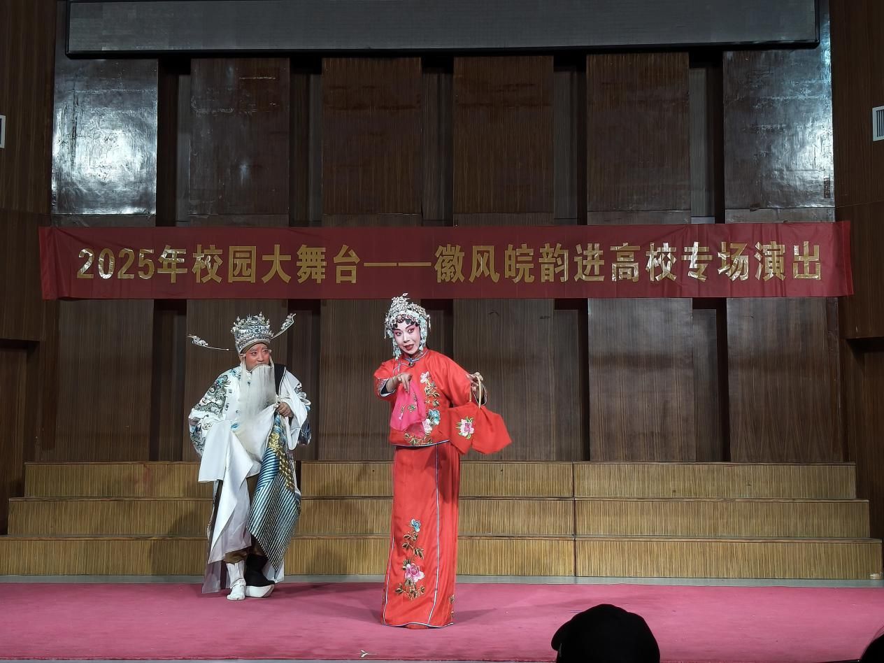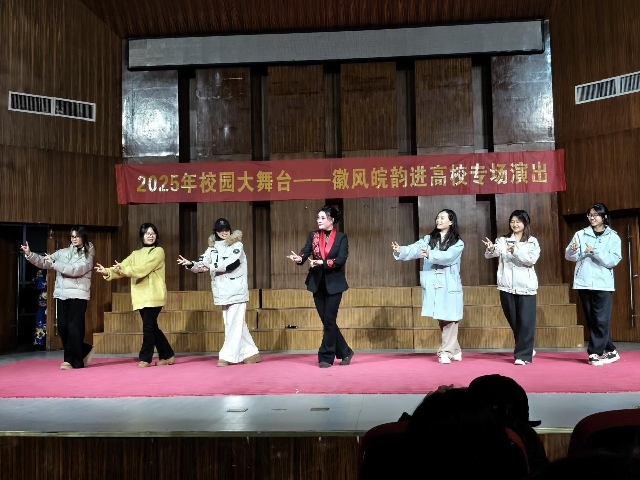 近日,由中共安徽省委宣传部、安徽省教育厅、安徽省文化和旅游厅主办,阜阳市演艺有限公司承办的2025年“校园大舞台——徽风皖韵进高校”专场演出在beat365官网锦绣校区音乐厅举办,师生在艺术思政课中共同领略徽风皖韵,传承弘扬中华优秀传统文化。校团委副书记何磊、兼职副书记唐银及300余名学生观看演出。