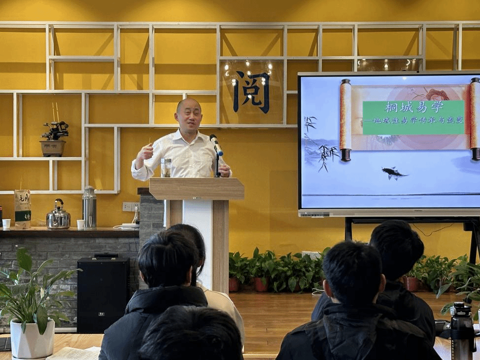在核心分享环节,陶有浩教授重点介绍了桐城易学的代表人物及其思想成就,生动展现了桐城易学“代有名家、绵延不绝”的学术传统。谈及桐城易学的育人价值,陶有浩教授指出,桐城易学蕴含着丰富的精神养分,能够培养学习者的逻辑思维、系统思维与联系思维,其倡导的“自强不息”进取精神、“厚德载物”包容胸怀、“知行合一”实践导向与探索创新的科学精神等,对当代青年成长成才具有重要指导意义。