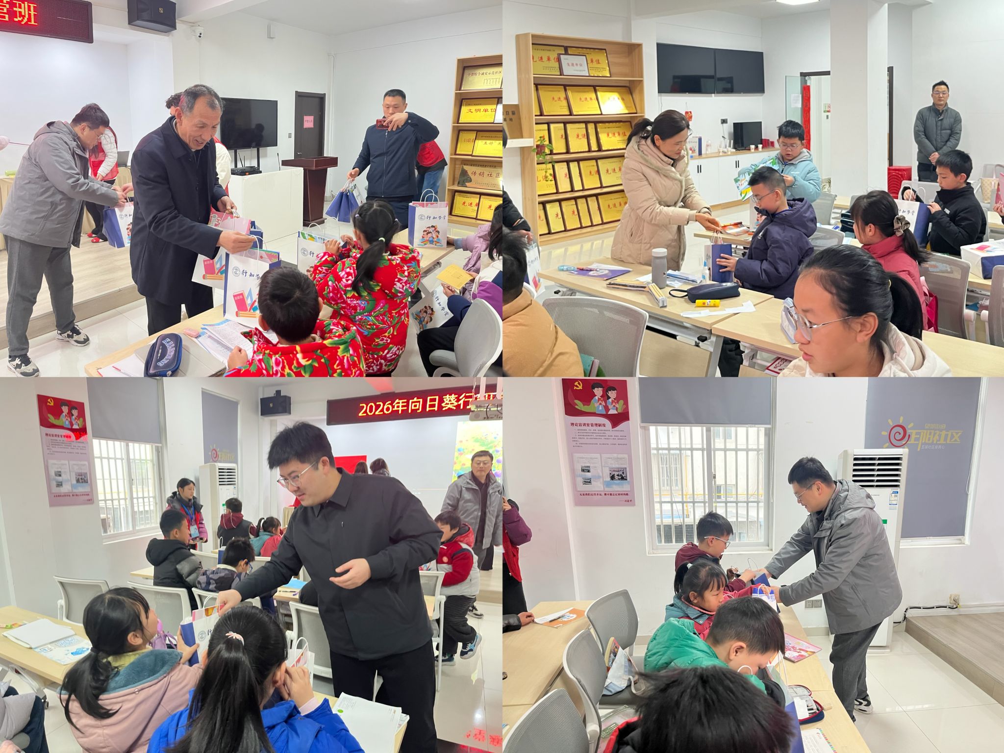 为进一步完善实践育人体系,提升“第二课堂”育人成效,根据“共青团·伙伴计划”安排及学校统一部署,学校组织青年志愿者返家乡开办寒假“行知学堂”。2月6日,安徽省青基会秘书长、安徽省希望工程办公室主任李永军,六安团市委书记罗伟伟,六安市金安区委常委、组织部部长吕平,校团委书记刁文彬等一行赴六安市金安区正阳社区、裕安区河滨社区,看望慰问坚守服务一线的“小先生”与学堂内小学员,送去学习用品与节日问候。