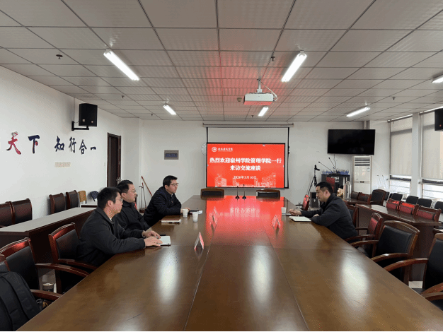 3月10日下午,宿州学院管理学院院长韩传龙、副院长宋徽等一行就科研发展、硕士点建设等相关工作来经济与管理学院调研。我院院长李晓翔、副院长钟玉文、专任教师刘经涛等参加了座谈交流。