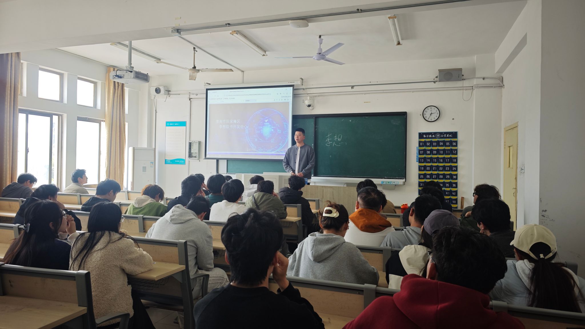 为树立和践行正确政绩观,为学生办实事,增强学生创业和拓展就业渠道,近日,计算机与人工智能学院在锦绣校区博约楼203教室成功举办淮南市田家庵区李想软件开发中心创业宣讲和专场招聘会。本次招聘会吸引了2026届毕业生众多学生前来参与,现场气氛热烈。